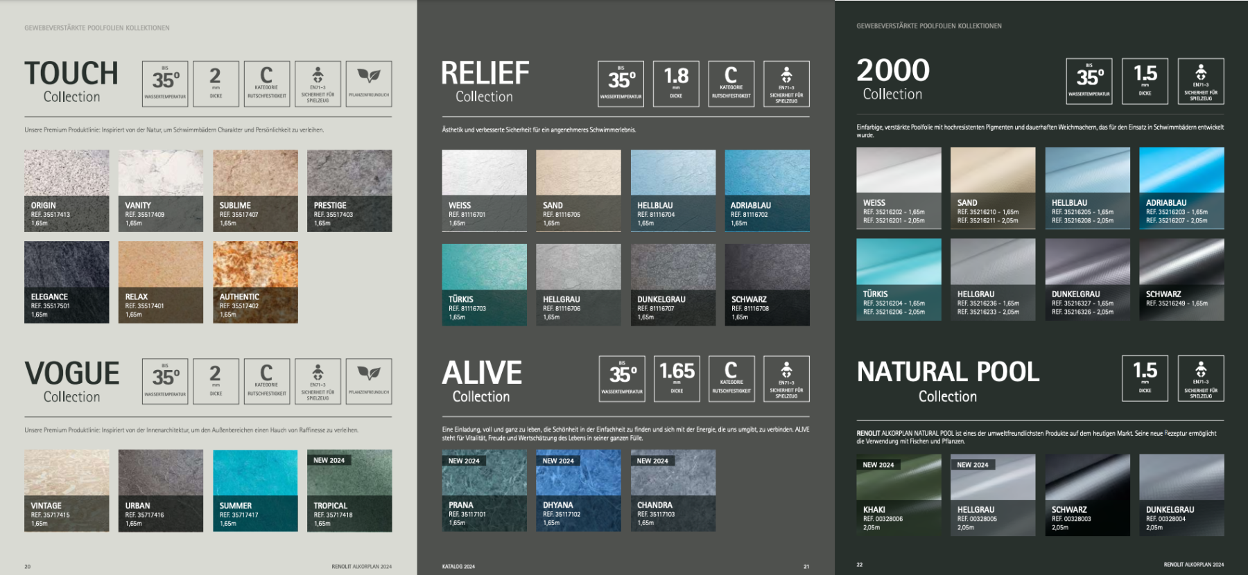 Elegante Schwimmbadauskleidung für Ihren Swimmingpool – unsere langlebigen Pool-Folien bieten nicht nur Dichtheit, sondern auch ästhetische Vielfalt. Tauchen Sie ein in die Welt der Schwimmbadfolien und entdecken Sie, wie Sie mit hochwertigen Poolauskleidungen Ihr Wasserparadies verwirklichen können!